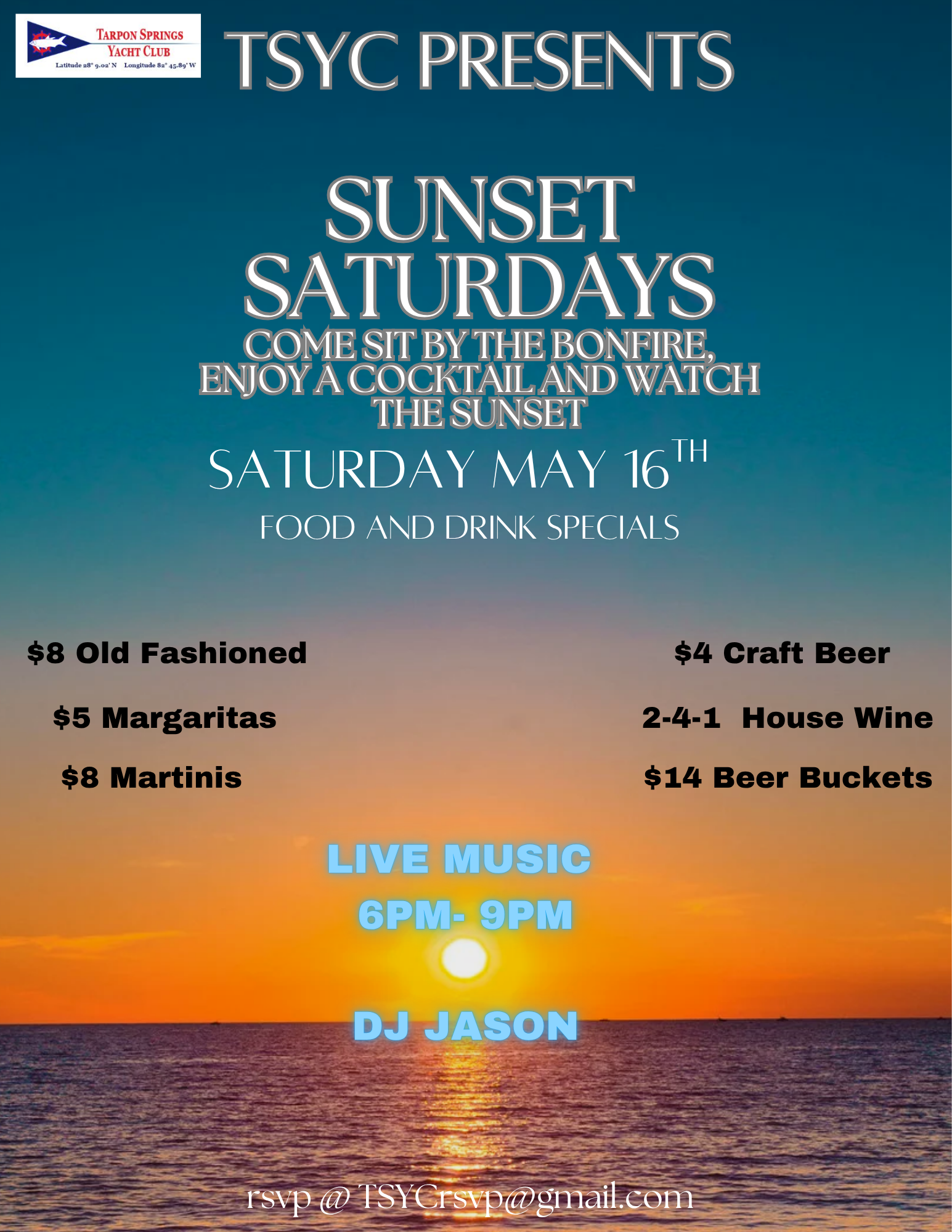 Back to All Events Sunset Saturdays Saturday, May 16, 2026 6:00 PM 9:00 PM Google Calendar ICS RSVP here!
